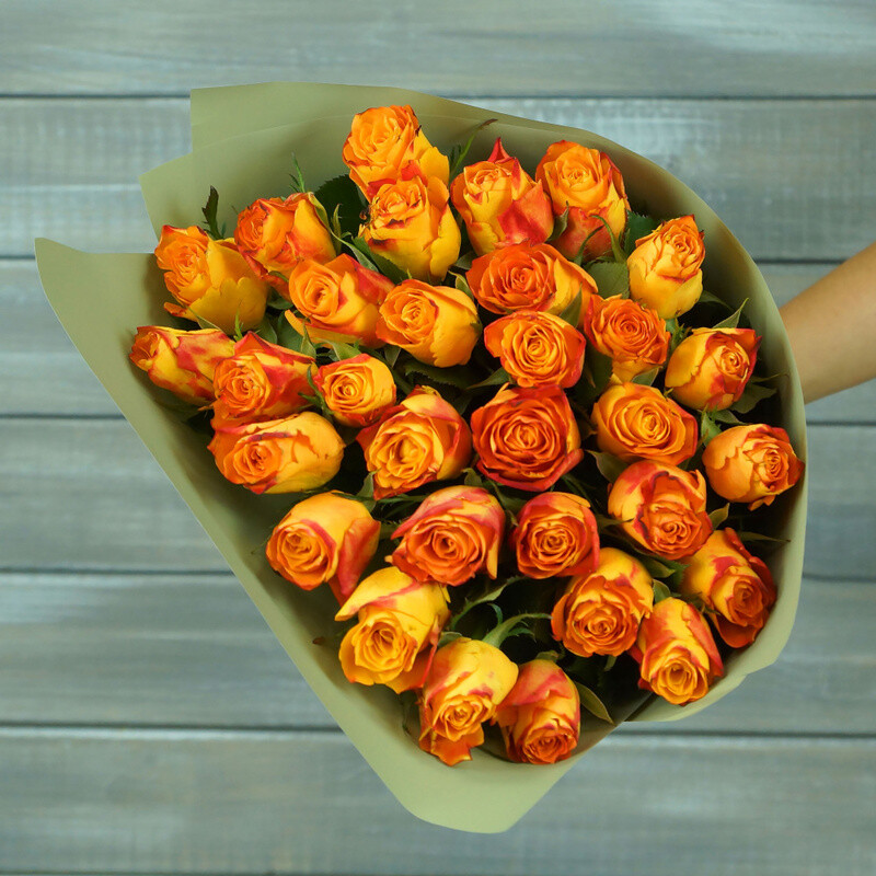 31 oranzhevaya roza v upakovke Keniya 40 sm.