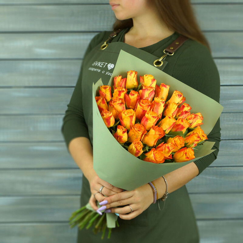 31 oranzhevaya roza v upakovke Keniya 40 sm., standart