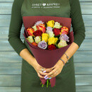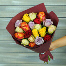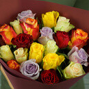 21 raznotcvetnaya roza v upakovke Keniya 40 sm., standart
