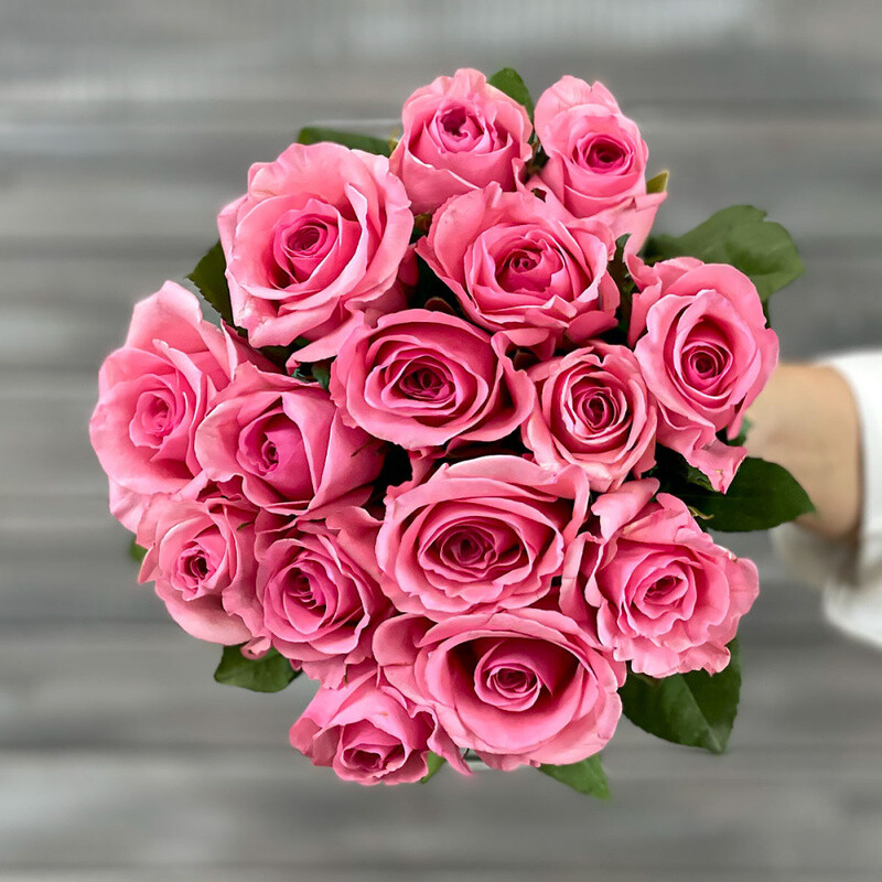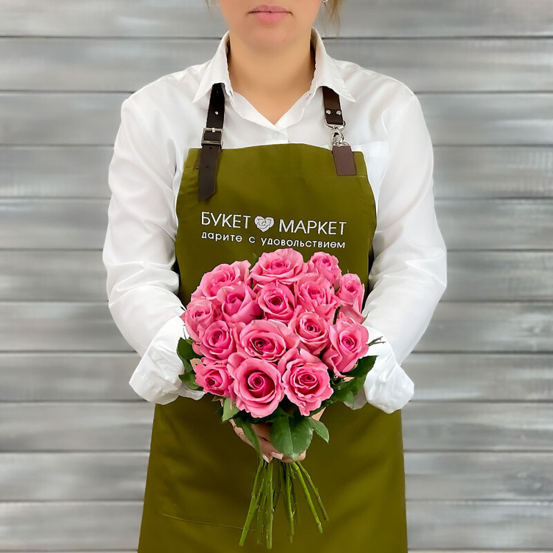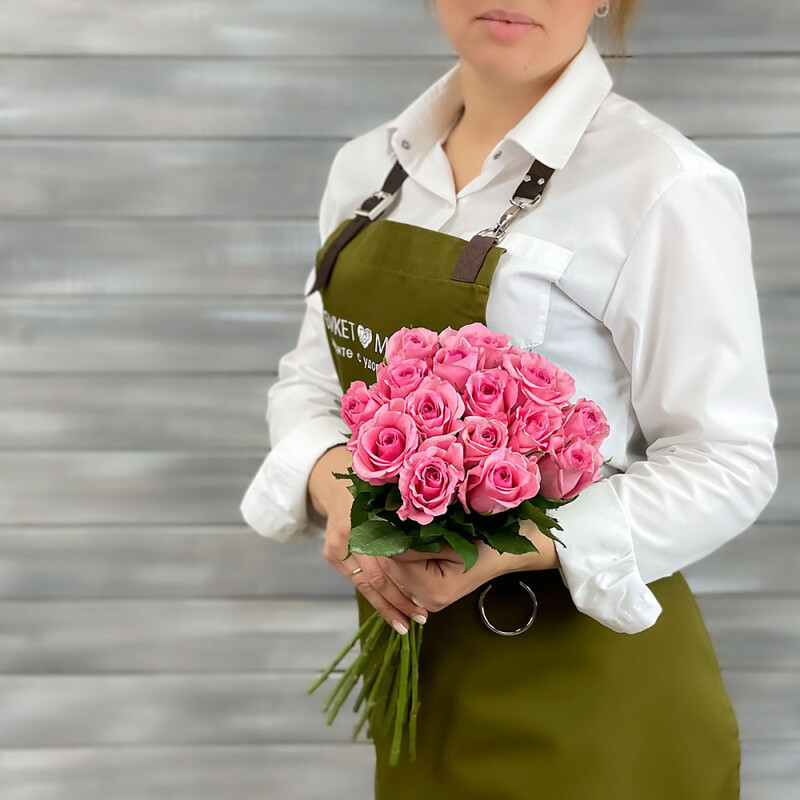 Buket iz 17 rozovih roz s lentoj Keniya 40 sm., standart
