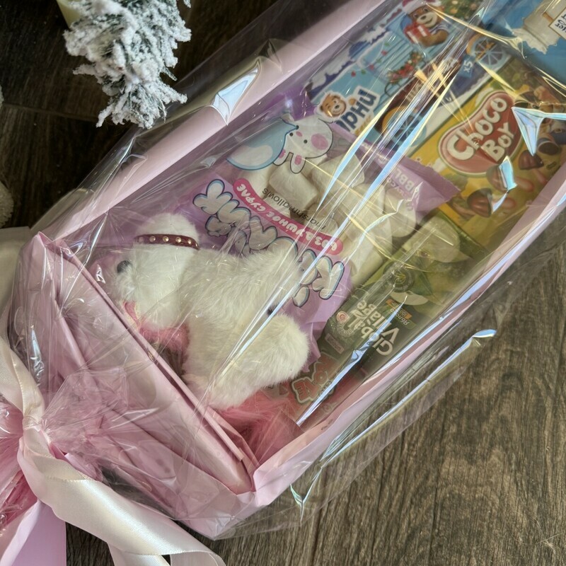 Bol_shoj nabor sladostej na Novij god v prazdnichnom oformlenii s myagkoj igrushkoj simvolom goda