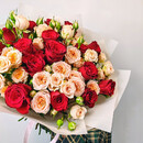 Elegantnij s krasnimi i kustovimi rozami
