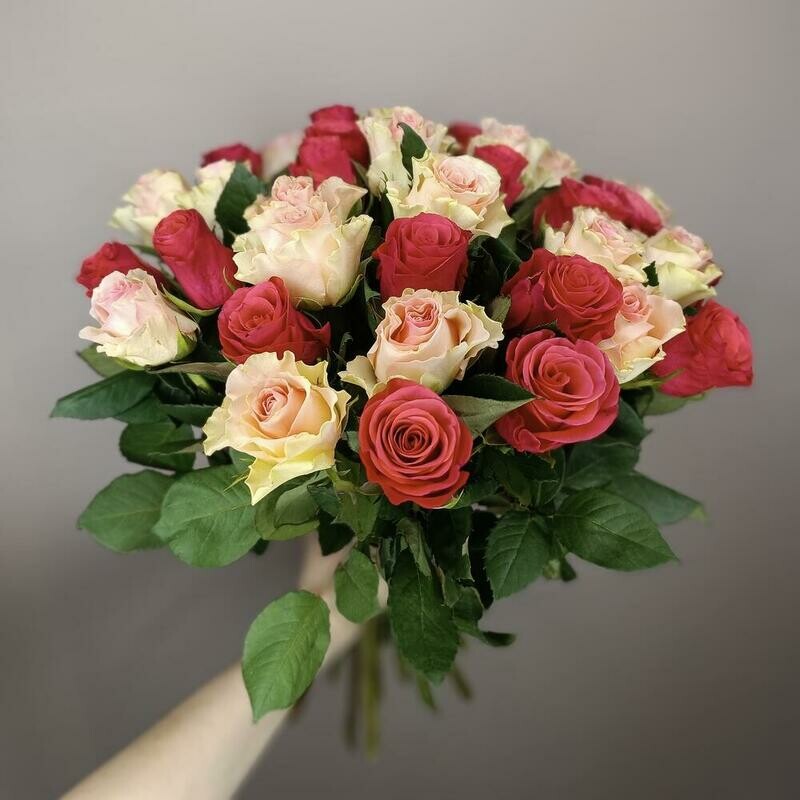 - Rozovie rozi 35 roskoshnij podarok s lentochkoj
