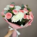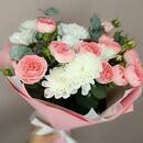 - Kustovie rozi i belaya hrizantema s blagorodnim evkalipiom