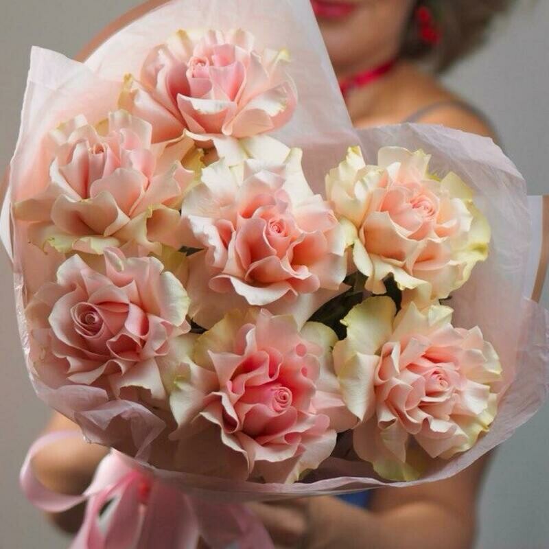 Nezhnij buket iz 7 rozovih frantcuzskih roz, nezhnij buket iz 7 rozovih frantcuzskih roz