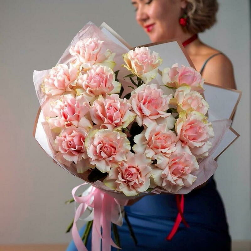 Buket iz 15 rozovih frantcuzskih roz, buket iz 15 rozovih frantcuzskih roz