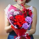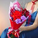 Buket kompliment iz krasnoj frantcuzskoj rozi, al_stromeri, Santini i gvozdiki