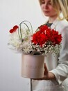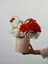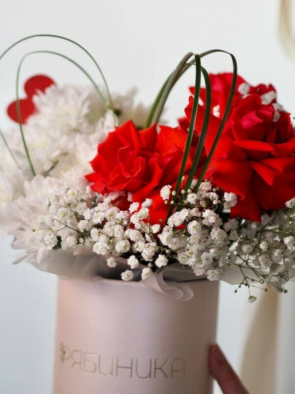 Kompozitciya s frantcuzskoj rozoj, kustovoj hrizantemoj i bergrassom, standart