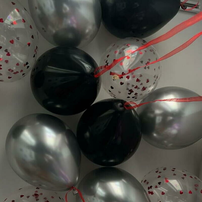 SHar lateks hrom (12-14 dyujmov) - 4sht SHar lateks s konfetti (12-14 dyujmov) - 4sht SHar lateks obichnij (12-14 dyujmov) - 3sht Nabor «CHernie + Serebro hrom + Konfetti» (11 sht.) — eto gotovoe dizajnerskoe reshenie dlya sozdaniya zapominayushegosya, stil_nogo i energichnogo prazdnika. On govorit o vkuse, vnimanii k detalyam i zhelanii udivit_ gostej ne prosto tcvetom, a igroj faktur, sveta i emotcij.