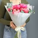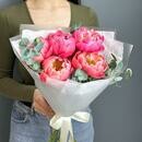 Etot velikolepnij buket sostoit iz nezhnih pionov i aromatnogo evkalipta, kotorie sozdayut nepovtorimuyu atmosferu nezhnosti i iziskannosti. Oni obramleni krasivoj korejskoj bumagoj, dobavlyayushej osobij sharm i utonchennost_ kompozitcii. Etot buket stanet prekrasnim podarkom dlya lyubogo povoda i poraduet svoim