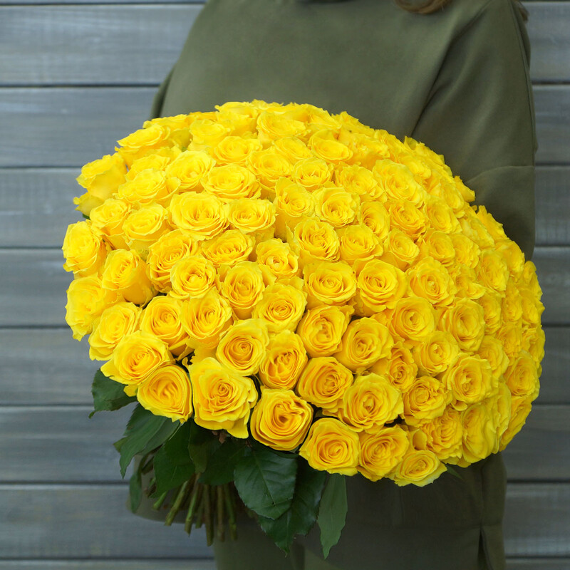 101 zheltaya roza s lentoj Keniya 40 sm., standart