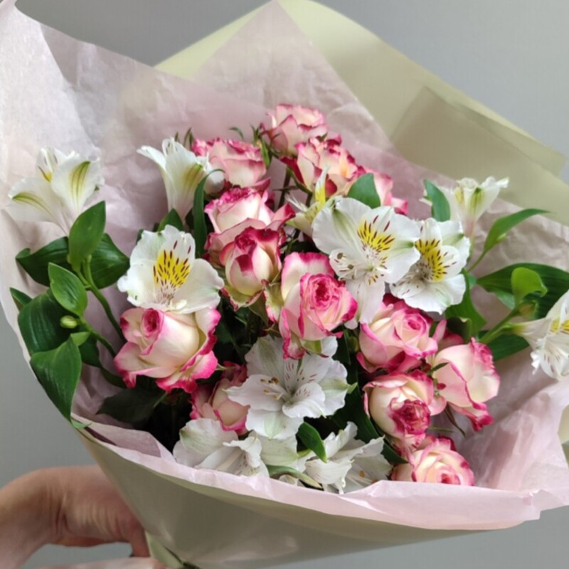 - Buket iz kustovih roz i al_stromerij