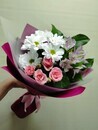 - Buket Nezhnaya vstrecha s kustovoj rozoj