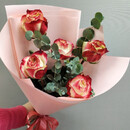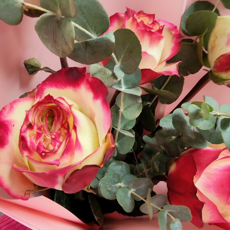 - Buket iz 5 roz s evkaliptom