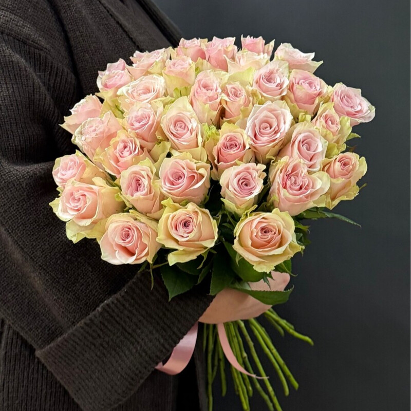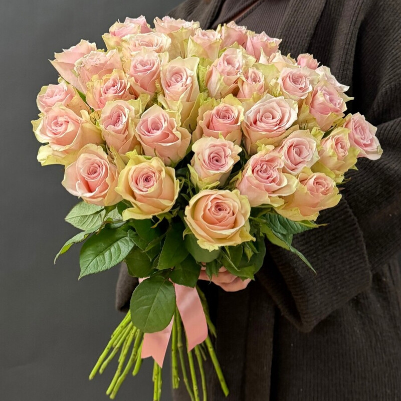 - 35 nezhno-rozovih roz pod lentu