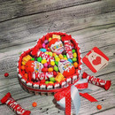 Sladkij buket. Tort serdtce iz shokoladok i konfet, standart