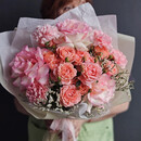 Buket "Nezhnost_ v kazhdom lepestke" (kustovie pionovidnie rozi Dzhul_etta, frantcuzskie rozi Esperansa)
