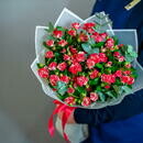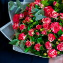 - Buket yarkih kustovih roz v svetlom oformlenii 1679