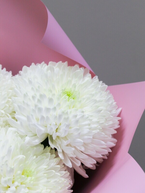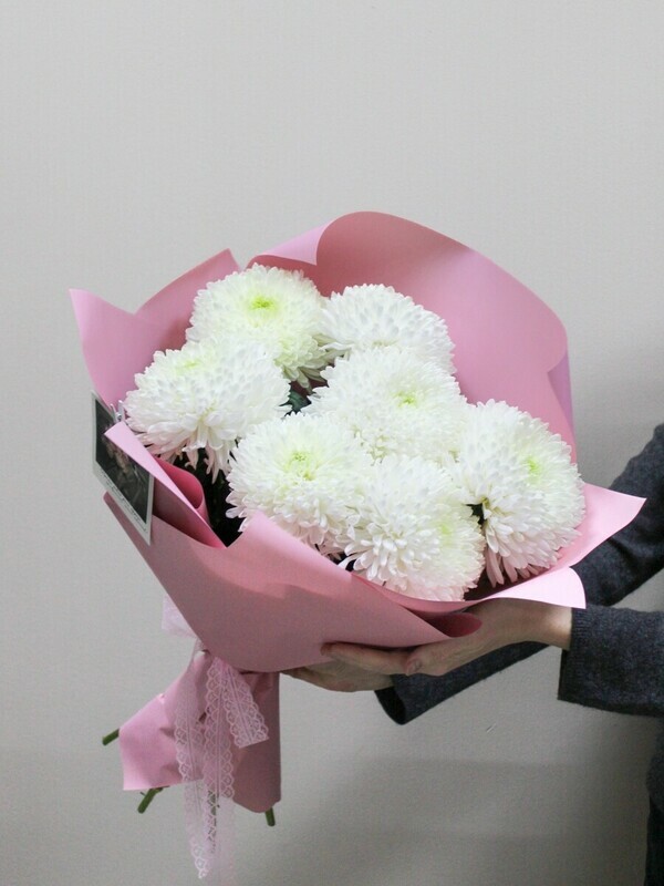 Buket iz pishnih belih hrizantem v nezhnoj upakovke s kruzhevnoj lentoj - klassika sredi buketov. Universal_nij variant dlya raznih sluchaev - den_ rozhdeniya, 8 marta, yubilej, professional_nij prazdnik, podarok dlya mami, sestri, teti i babushki. Po Vashemu zaprosu mozhem dobavit_ k zakazu vozdushnie shari, myagkie igrushki i sladosti.