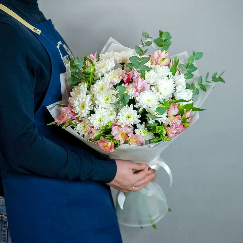- Svetlij buket s hrizantemoj i al_stromeriej 1677
