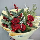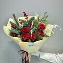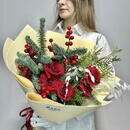 - «Alaya svezhest_» buket iz nobilisa,tui,rozi red naomi,dekora i hasmantiuma