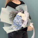 - «Nebesnij voyazh» Buket s gortenziej, gvozdikoj i Veronikoj