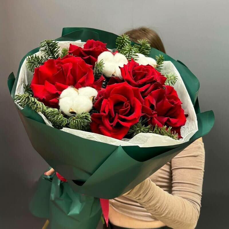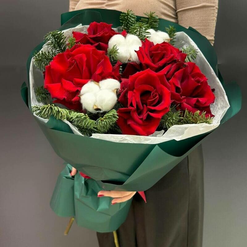 - Frantcuzskie rozi s nobilisom i hlopkom v upakovke