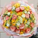 Udobnaya perenoska - dostavlyaem buket v firmennom pakete, kotorij zashishaet tcveti i delaet transportirovku komfortnoj.
