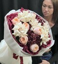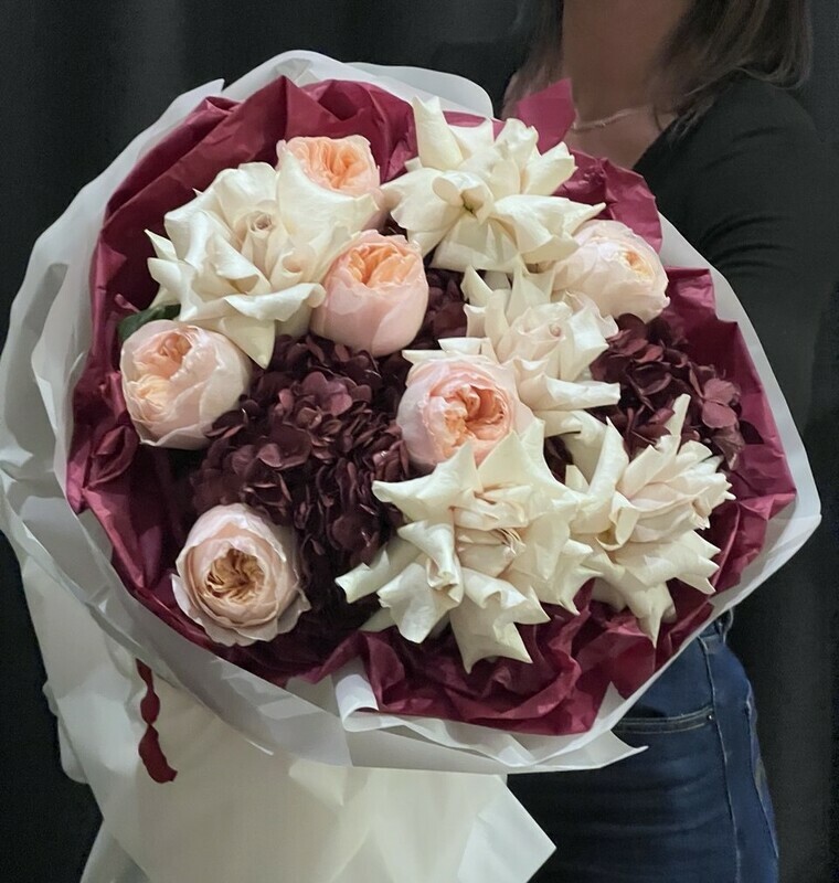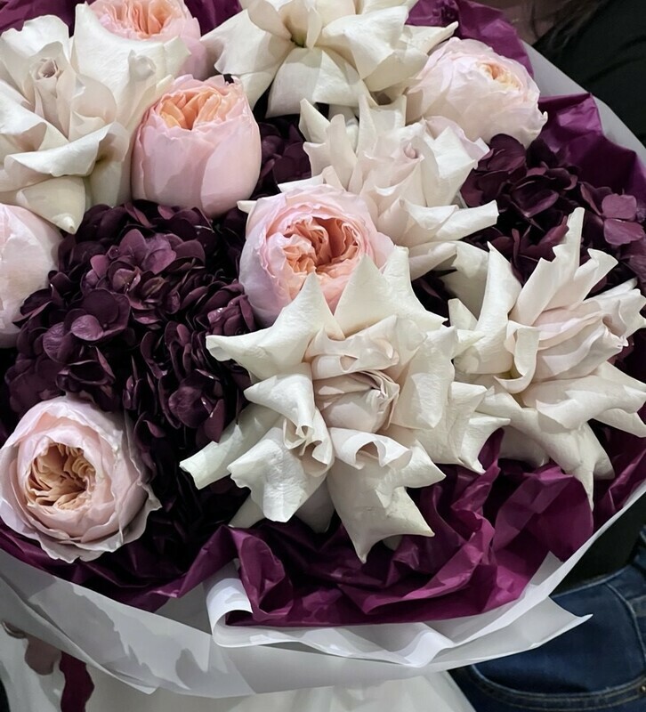 Avtorskij buket iz gortenzij, frantcuzskih roz, pionovidnih roz " Mamochke"