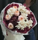 - Avtorskij buket iz gortenzij, frantcuzskih roz, pionovidnih roz " Mamochke"