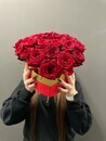 - Buket iz aromatnoj rozi Keniya v korobke serdtce