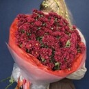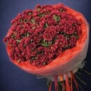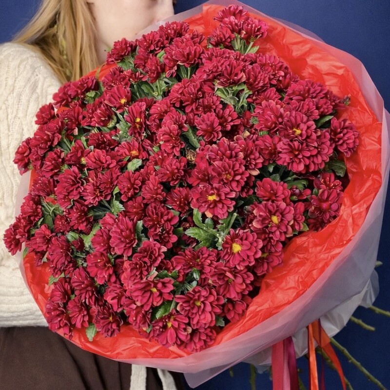 - YArkij buket iz krasnoj kustovoj hrizantemi