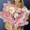 - Milij buket s pion rozoj i ranunkulyusom