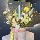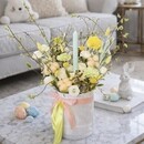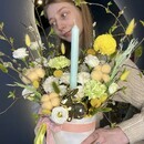 - "Pashal_noe utro" kompozitciya s verboj, kraspediej, hlopkom i tcvetushimi vetkami v barhatnoj korobochke