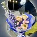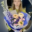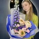 - Kontrastnij Buket s del_finiumom i redkoj pionovidnoj rozoj