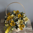 - Kompozitciya v korzine al_stpomeriya, kustovaya romashka, evkalipt