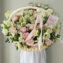 KOrzina iz belosnezhnih al_stromerij, nezhnih pionovidnih roz
