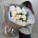 13 ekvadorskih roz sorta Vajt Ohara s zelen_yu v oformlenii
