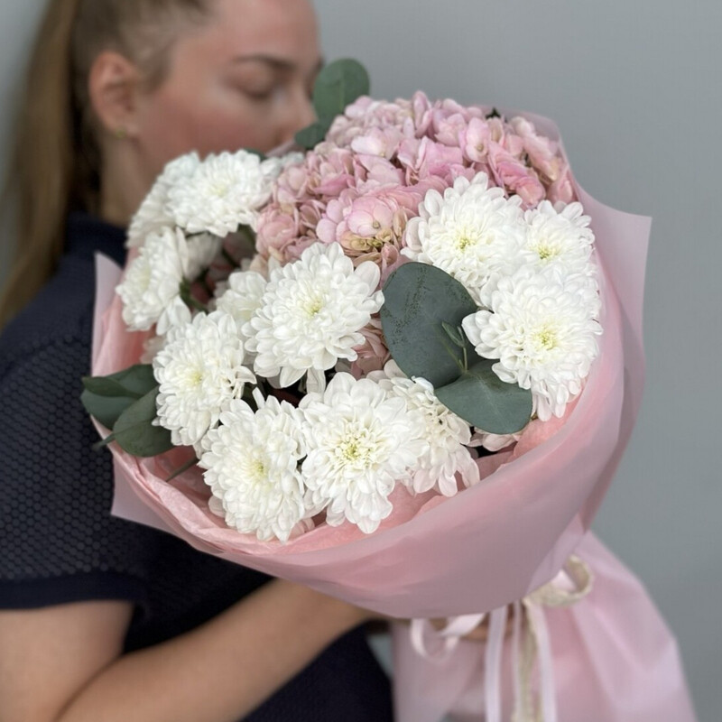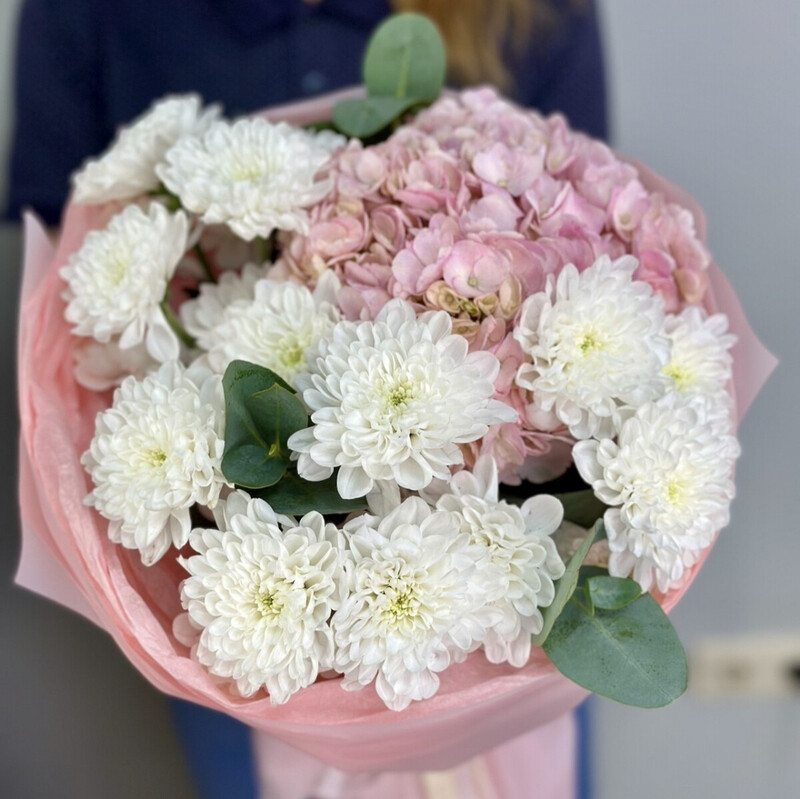Avtorskij buket s rozovoj gortenziej