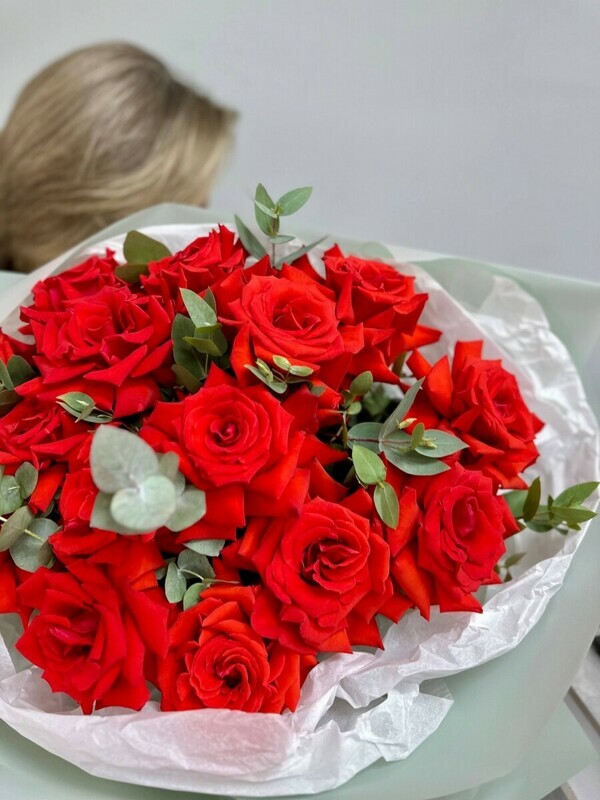 WOW buket iz 15 frantcuzskih alih roz, premium