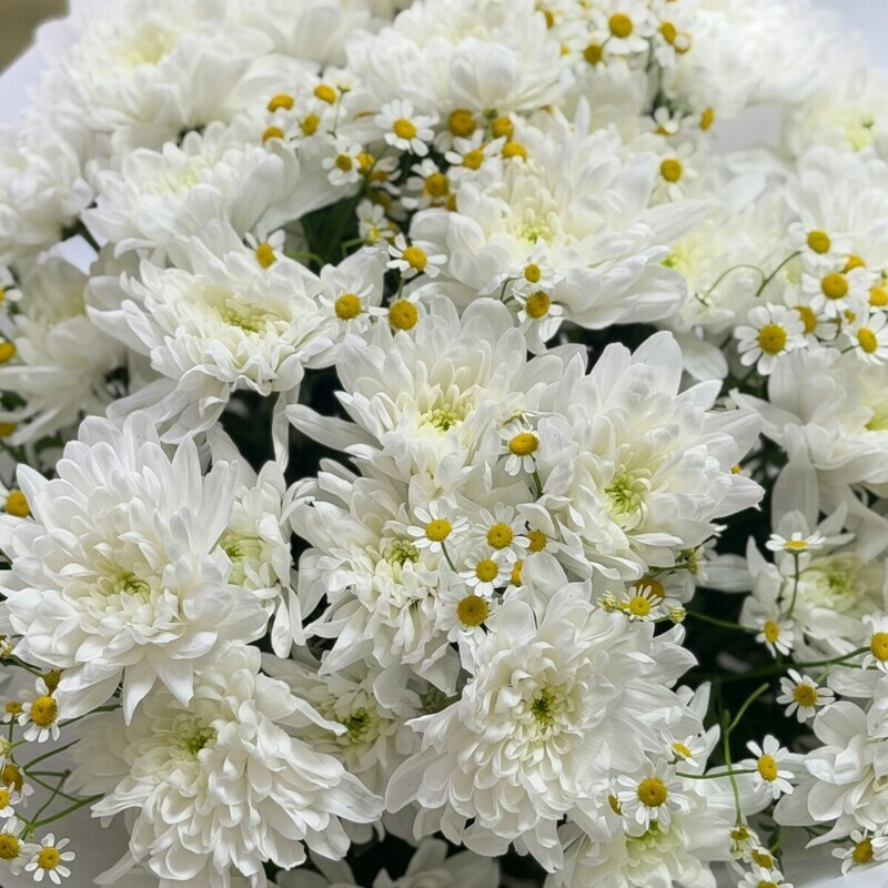 - Buket iz hrizantem Altaj i romashek tanatcetum