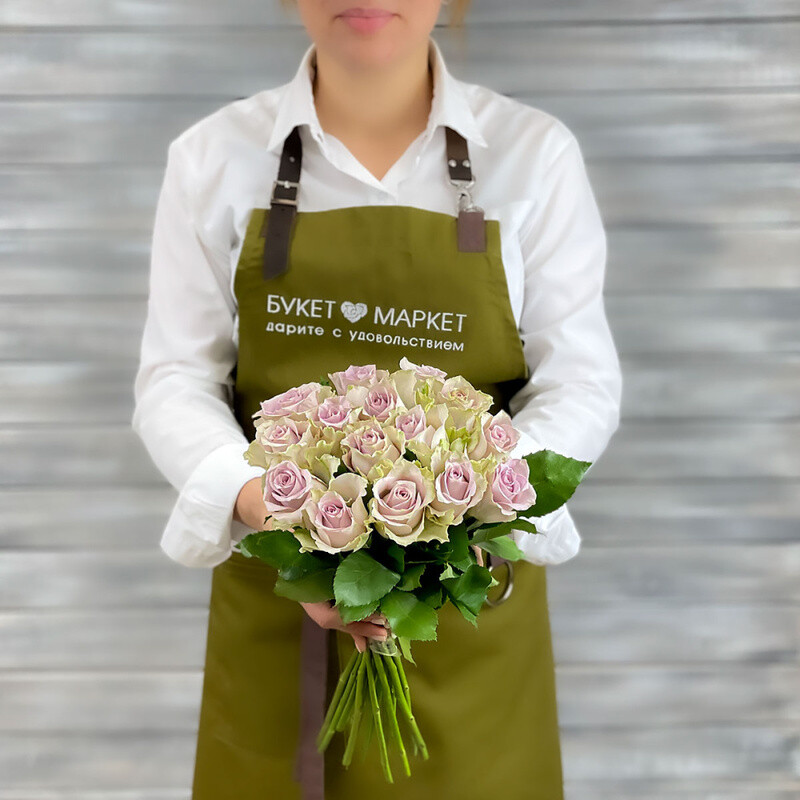 Buket iz 17 sirenevih roz s lentoj Keniya 40 sm., standart