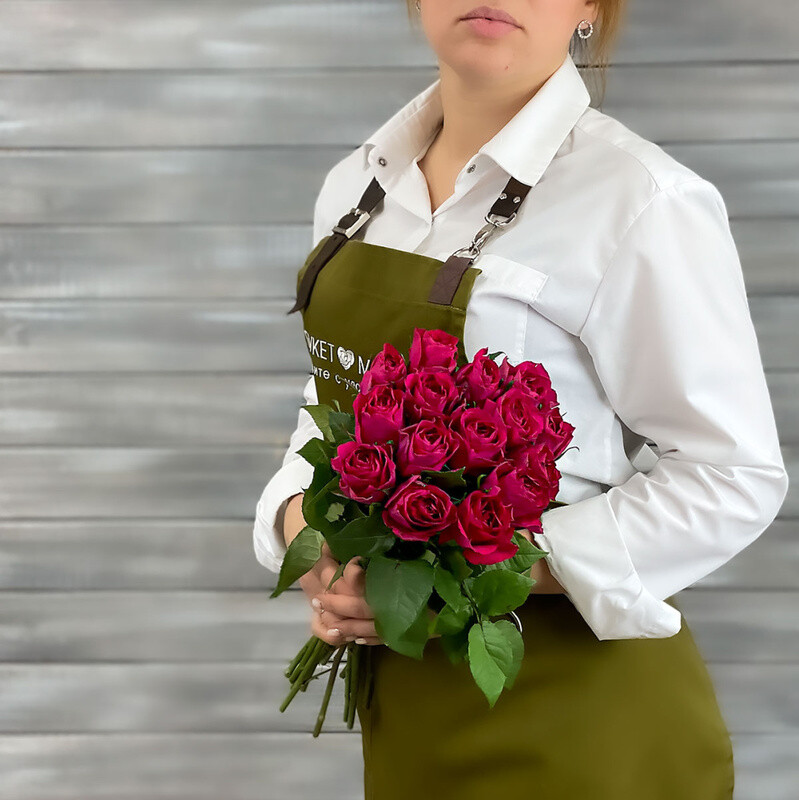 Buket iz 17 malinovih roz s lentoj Keniya 40 sm.