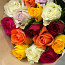 Buket iz 19 raznotcvetnih roz v krafte Keniya 40 sm.