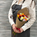 Buket iz 19 raznotcvetnih roz v krafte Keniya 40 sm., standart
