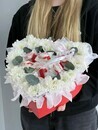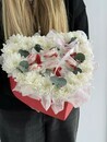 Serdtce iz hrizantemi s konfetami Raffaello
