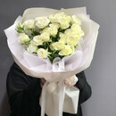 Buket iz melkih rozochek, akkuratno upakovan v sovremennie stil_nie materiali