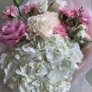 - Buket miks s dobavleniem gortenzii i kustovih diantusov