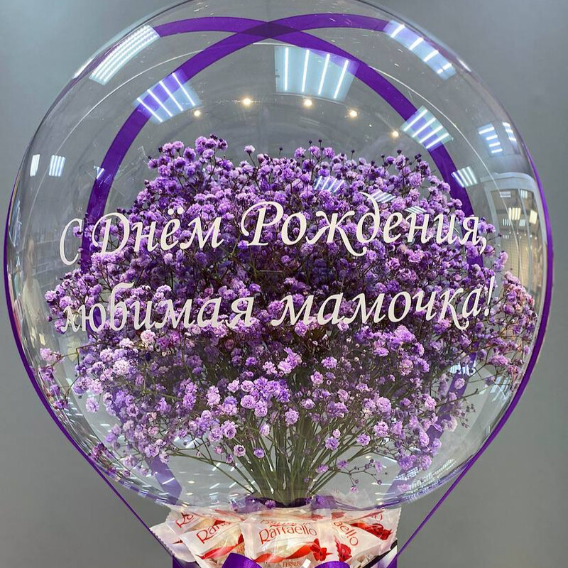 - Kompozitciya s gipsofiloj v share babls s rafaello
