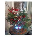 Kompozitciya v bokale s zhivoj gollandskoj elkoj, novogodnim dekorom, steklyannimi sharami i diodami, ne trebuyushimi podklyucheniya k rozetke.